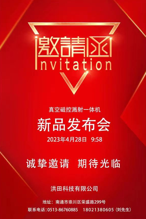 Kota Technology is van plan om een nieuwe productlanceringsconferentie te houden voor Vacuum Magnetron Sputtering Integrated Machine in de fabriek van Kota Technology (Jiangsu) Co., Ltd. (nr. 299, Rongsheng Road, Chongchuan District, Nantong City) op vrijdag 28 april 2023. instellingen om de conferentie bij te wonen.