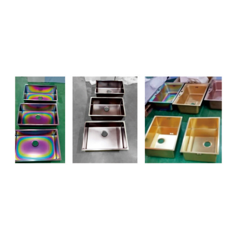 Deze gespecialiseerde coatingsystemen verbeteren niet alleen de zinkprestaties, maar bieden ook een luxe afwerking die voldoet aan de groeiende vraag naar hoogwaardige, esthetische producten in moderne huizen. Met geavanceerde PVD -technologie kunnen gootstenen nu in verschillende kleuren komen, waaronder roségoud, champagne goud, gunmetal en meer, het toevoegen van een vleugje elegantie aan elke keuken of badkamer.